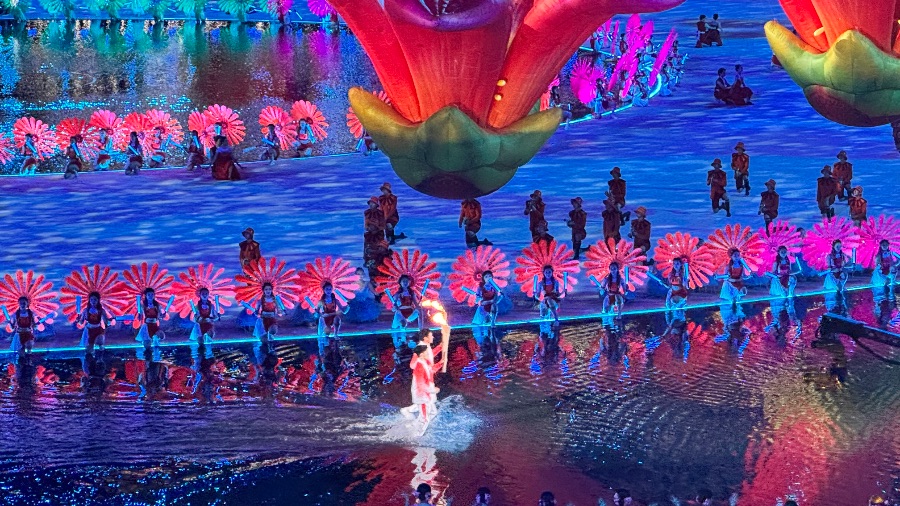 此次全运圣火,无论是火种采集还是火炬传递,都充分体现科技、环保的理念。这是全球大型体育赛会史上首次从深海采集“源火”,源自南海1522米深处的可燃冰,被光伏发电的“天之光”引燃。同时,火炬在穗深港澳四城同传时,全球首次人形机器人接力,无人驾驶转场,低空飞行器运载,将大湾区科技感拉满。