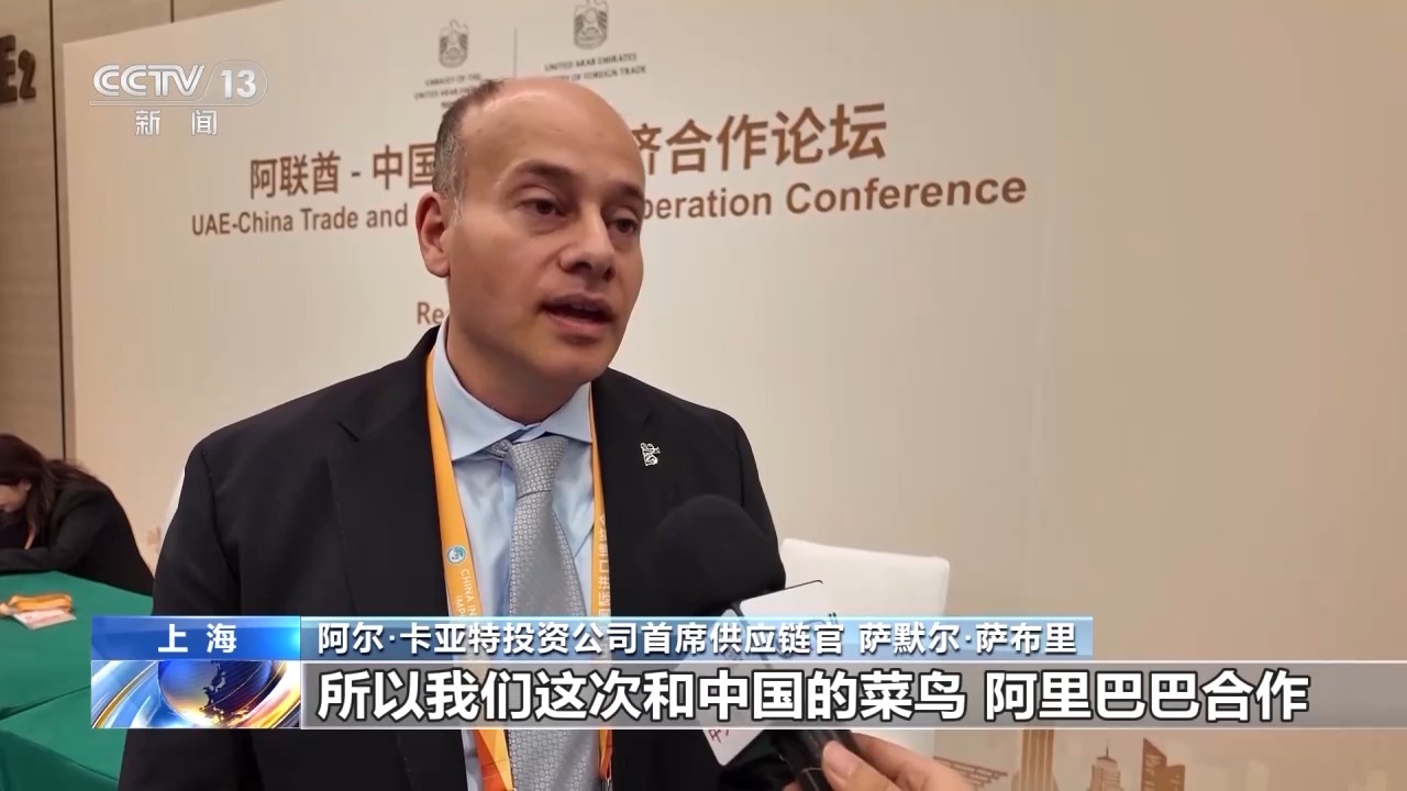 阿尔·卡亚特投资公司首席供应链官 萨默尔·萨布里:我们在物流领域已经深耕40多年了,所以我们这次和中国企业合作,希望把中国科技企业这些最新的AI技术能用到阿联酋,提升我们的物流效率。