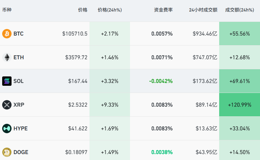 周末重挫的加密货币市场反弹,比特币一度重返10.6万美元,以太币一度站上3600美元。截至22:38加密货币主要品种均大幅上涨,近24小时成交额大增, 全市场近12万人被爆仓,其中约2/3为空头。
