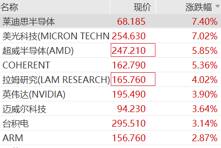 其中,美光科技涨逾7%,超威半导体涨4.8%,英伟达、台积电涨逾3%。闪迪高开高走,目前涨超10%,该股上周五收涨超15%。此前闪迪宣布上调NAND闪存合约价格50%。(回顾:闪存龙头宣布涨价50%,10股年内股价翻倍)
