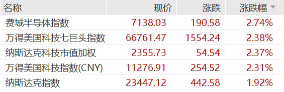 北京时间11月10日,美股三大股指集体高开,科技股表现强劲,截至23:00左右,纳斯达克综合指数涨约2%,费城半导体指数涨超2.7%。