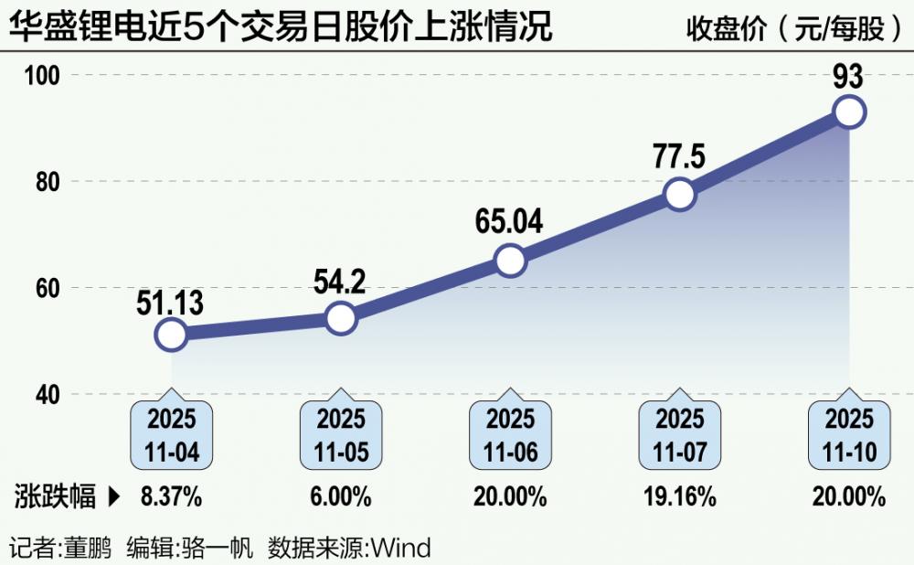11月10日,华盛锂电再次涨停,近五个交易日涨幅达到97%,当日93元/股的收盘价已经反超2022年锂电周期高点,公司上市三年来的套保盘就此全部“解放”。