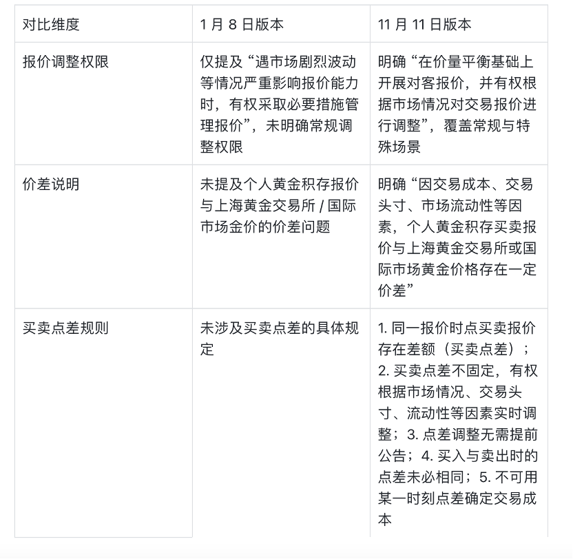 - 同一报价时点,个人黄金积存买卖报价之间存在一定差额(即买卖点差);