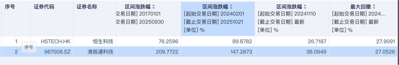 从过往表现来看,在多个时间周期中,港股通科技ETF招商(159125)的标的指数均展现出更强的上行弹性。