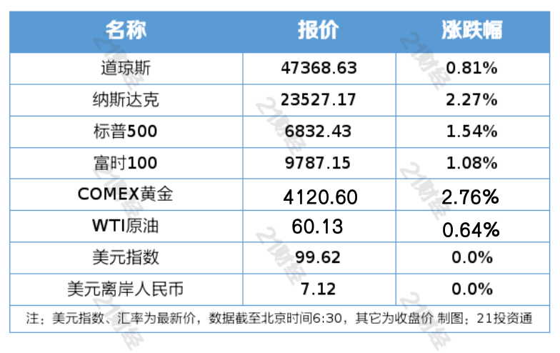 1、美股三大指数集体收涨,纳斯达克综合指数涨2.27%。大型科技股普涨,英伟达收涨5.8%,创4月份以来最大单日涨幅。欧洲斯托克600指数收盘上涨1.4%,创下六个月来最大涨幅。热门中概股普涨,纳斯达克中国金龙指数收涨2.25%,小鹏汽车涨超16%。贵金属飙升,现货黄金一度跃升2.9%,突破每盎司4115美元。现货白银上涨4.6%至50.56美元/盎司。