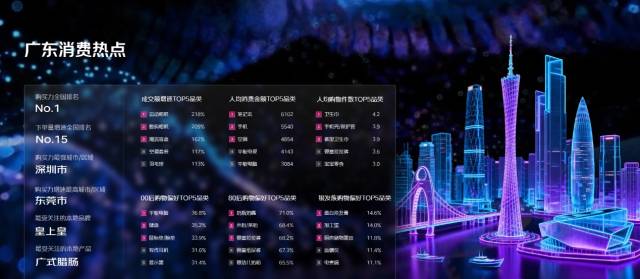 南方+记者从京东获悉,广东省在此次大促期间的表现亮眼,购买力排名第一,稳坐全国消费C位。在广东省内,深圳市是购买力最强的城市,东莞市的购买力增速最高。知名的“广字头”品牌众多,“皇上皇”是最受关注的本地品牌,“广式腊肠”是最受关注本地产品。