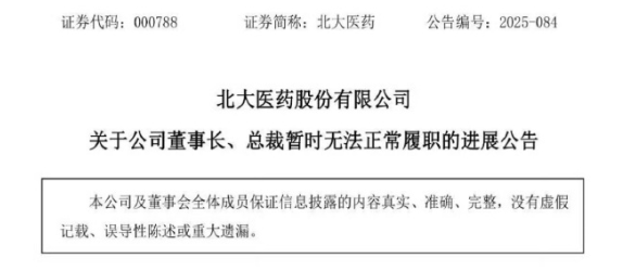 10月29日,北大医药公告称,公司董事长、总裁徐晰人因配合相关部门调查被刑事拘留,暂时无法正常履职。