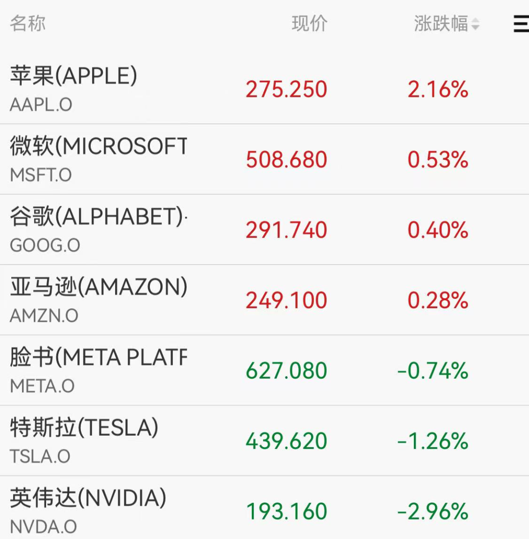 大型科技股涨跌互现,其中,苹果涨超2%,英伟达跌近3%。