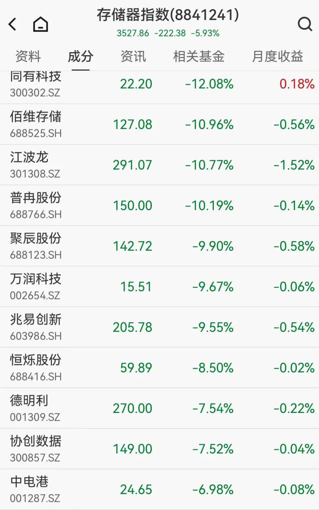 存储芯片概念重挫,同有科技、佰维存储等跌超10%,多股跌超9%。