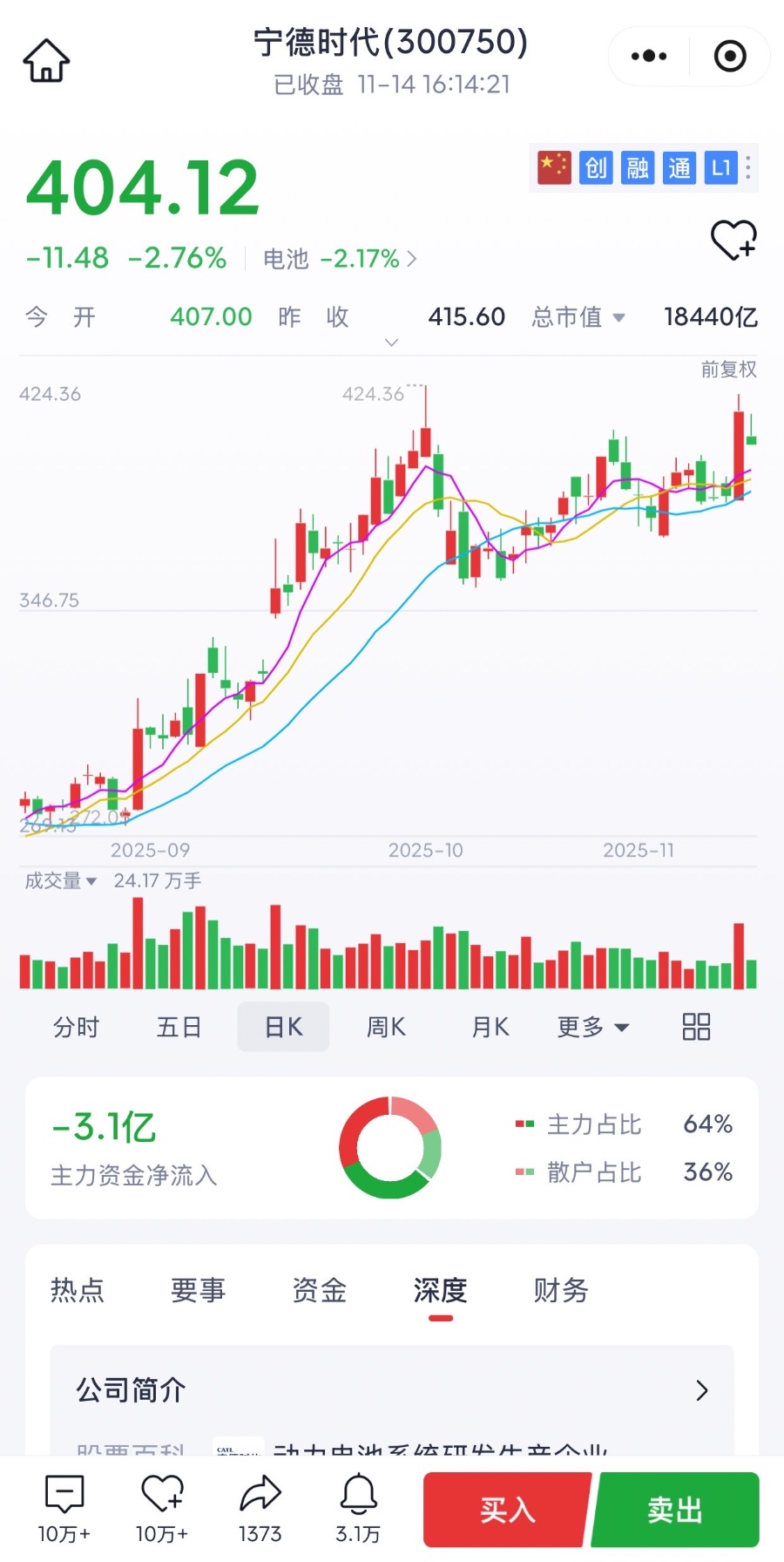 截至11月13日晚,受当日锂电板块集体大涨带动,该则消息在各大社交平台仍有着较高传播热度。不过,截至14日14时,锂电板块及宁德时代皆小幅下跌。
