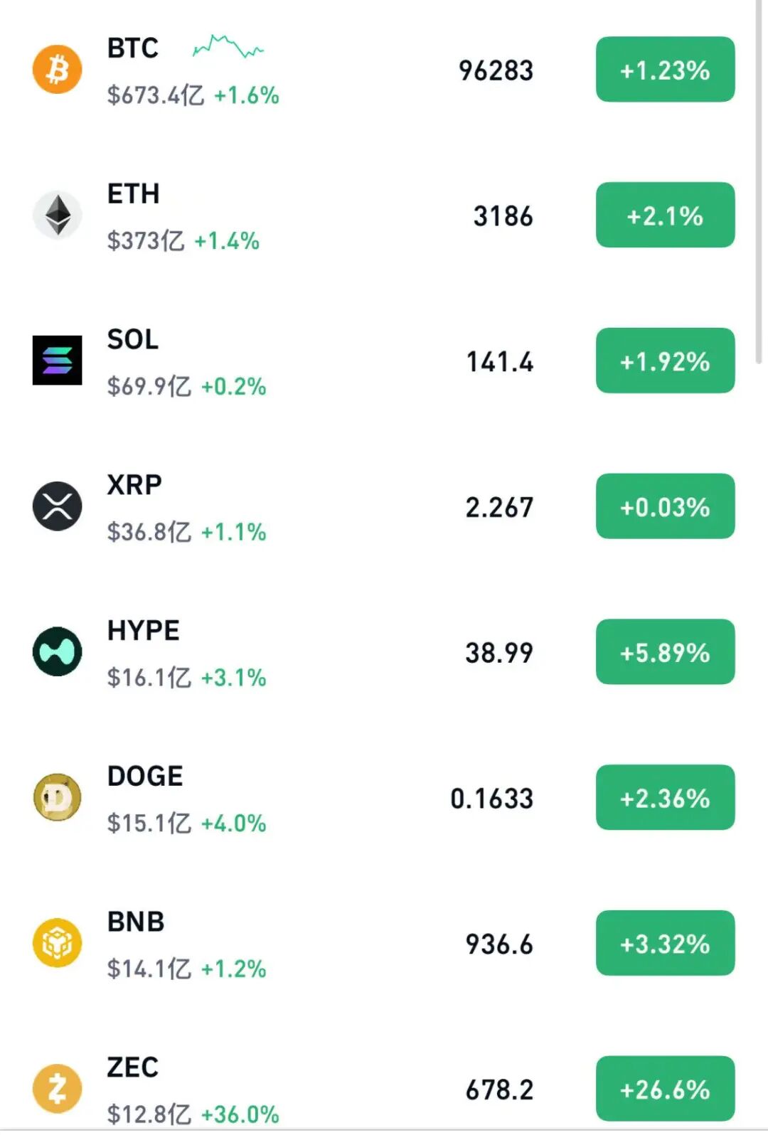 北京时间15日晚间,加密货币集体拉升,截至22时左右,比特币涨超1%,重回96000美元上方。