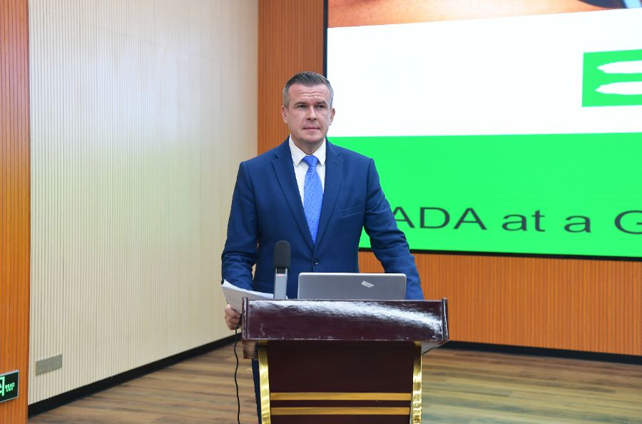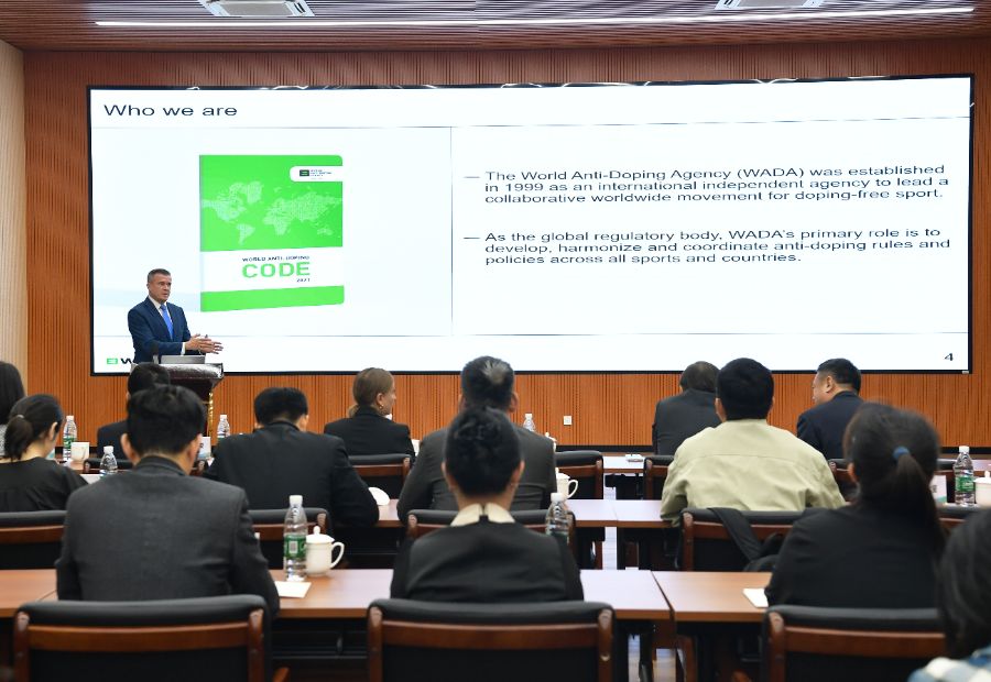 随后,班卡发表主题演讲,系统阐释WADA的使命与全球反兴奋剂体系架构。他特别呼吁青年学子树立“纯洁体育”价值观,积极参与反兴奋剂事业,共同守护纯净体育的精神内核,为全球体育诚信体系建设贡献青春力量。