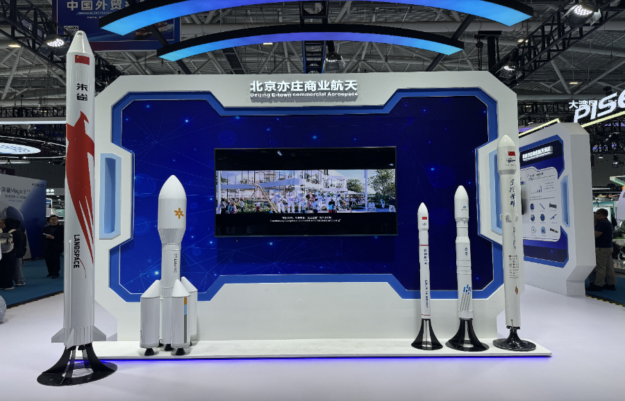 目前,全国75%商业火箭公司都聚集在北京亦庄。作为北京经开区航天产业运营平台,北京亦庄星箭科技产业发展有限公司也在本届高交会上亮相。在其展区,展示了包括来自蓝箭航天、星际荣耀、星河动力等多家民营商业航天企业的火箭模型。