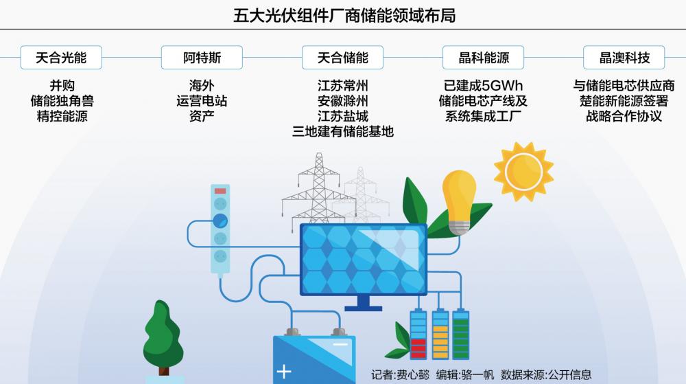 除了隆基绿能,其余四家光伏组件厂商天合光能、阿特斯、晶科能源、晶澳科技,在储能业务的延伸拓展上显得步调更快。