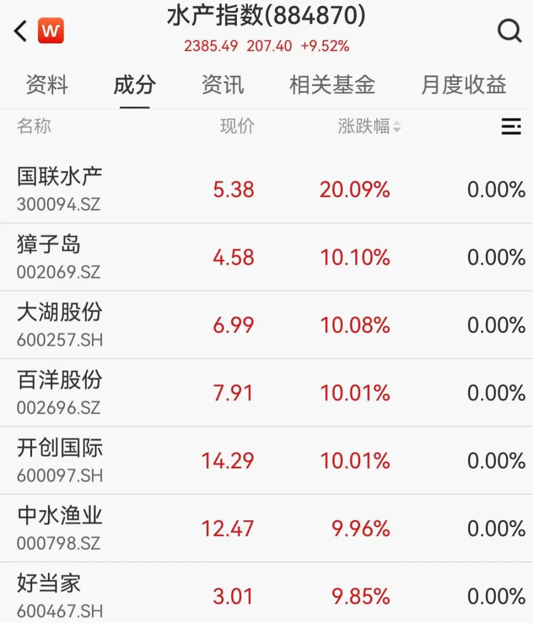 水产板块午后全面爆发,多只核心个股拉升并封死涨停,成为当日资本市场中最受瞩目的板块之一。国联水产午后开盘即封死20%涨停板,獐子岛、大湖股份、中水渔业、开创国际等多只水产股亦同步涨停。