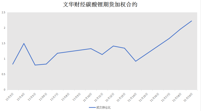 但是,11月17日受到碳酸锂期货上涨、成交量放大的影响,该指标迅速升至1.6倍以上。