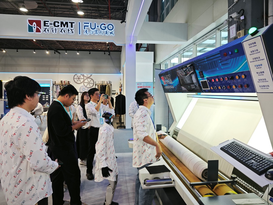 11月18日,2025世界服装大会活动现场,陈铭铸正在对一台AI质检一体机进行调试。随着云机—花布AI质检一体机匀速运转,一道无形的数字光束在面料上游走,布料上瑕疵被AI大模型一一识别出来,精准而高效,这一场景已在虎门衣针衣线生产车间运行一年多时间。