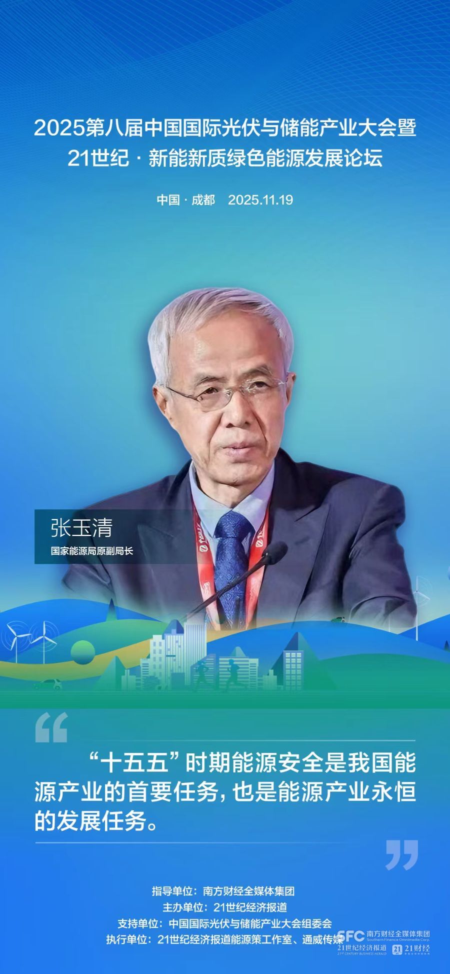 11月19日下午,由南方财经全媒体集团指导、21世纪经济报道主办、中国国际光伏与储能产业大会组委会支持的2025第八届中国国际光伏与储能产业大会暨21世纪·新能新质绿色能源发展论坛在四川成都举行。