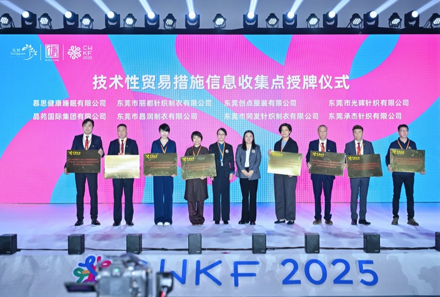 近日,第22届中国(大朗)毛织产品交易会(以下简称“织交会”)在大朗举行,全国唯一的毛纺技贸基地——中华人民共和国WTO/TBT-SPS国家通报咨询中心(东莞大朗)毛纺产品技术性贸易措施研究评议基地(简称“国家毛纺技贸基地”)正式授牌,8家企业获授基地信息收集点牌匾。