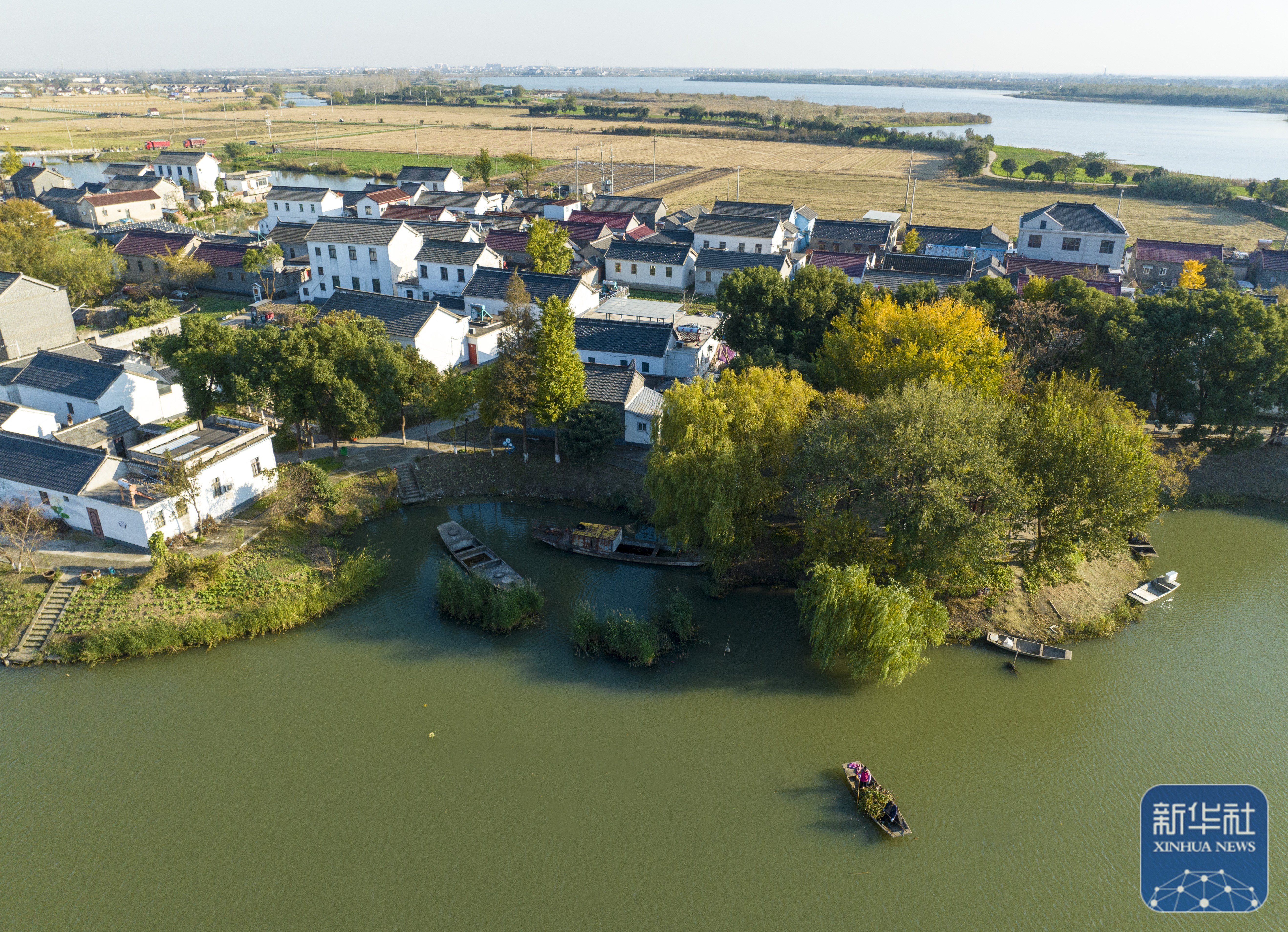 ↑ 11月21日拍摄的兴化市千垛镇东罗村村貌(无人机照片)。今年10月,东罗村获评联合国世界旅游组织“最佳旅游乡村”。