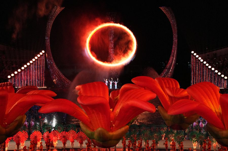 第十五届全国运动会主火炬被点燃。图源新华社。