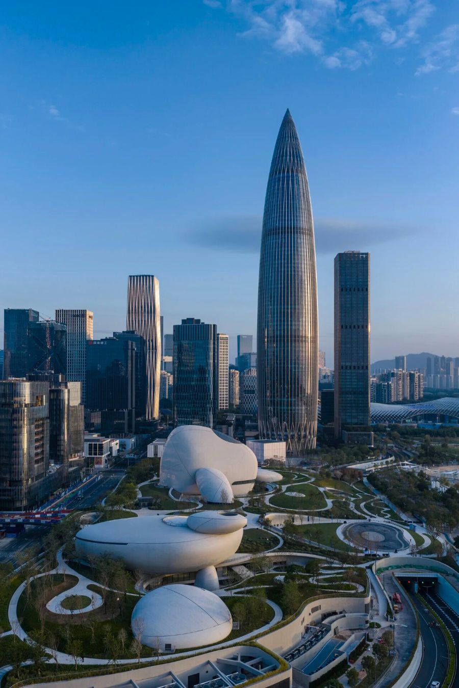 “深圳湾文化广场应当是一个伴随城市发展生长的绿色城市客厅。”马岩松曾公开谈到,这块场地在都市CBD与自然之间,首先考虑的是创造一个公共市民空间,让每个人都能享受深圳珍贵的海湾资源,再将建筑的展馆功能有机融入绿地景观中。