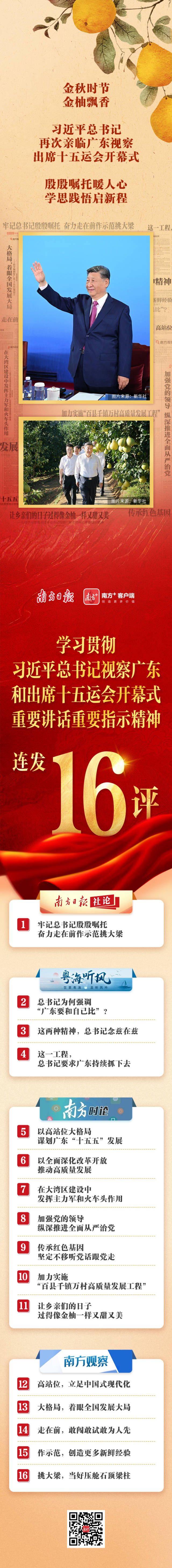 如何学懂弄通习近平总书记视察广东和出席十五运会开幕式重要讲话重要指示精神?南方日报连续推出16篇评论,现集中刊发,以飨读者。