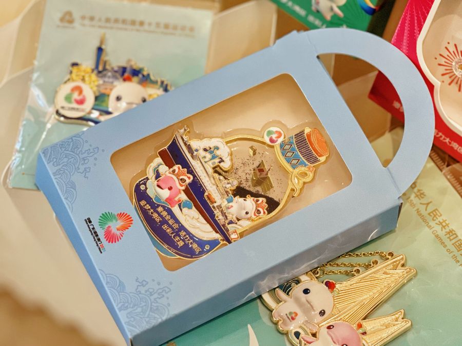 广轻控股集团围绕文化传承与赛事保障双线推进,在文创产品研发上深挖岭南非遗元素,将龙舟、醒狮、广彩、广绣、玉雕等传统文化符号与现代体育精神融合,开发出涵盖贵金属、工艺品、日用品等60余款特许商品。同时设立零售店与快闪点80余个,组建专业运营团队,助力赛事与文化传播。
