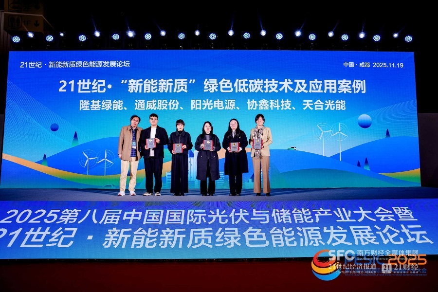 11月19日下午,由南方财经全媒体集团指导、21世纪经济报道主办、中国国际光伏与储能产业大会组委会支持的2025第八届中国国际光伏与储能产业大会暨21世纪·新能新质绿色能源发展论坛在四川成都举行。