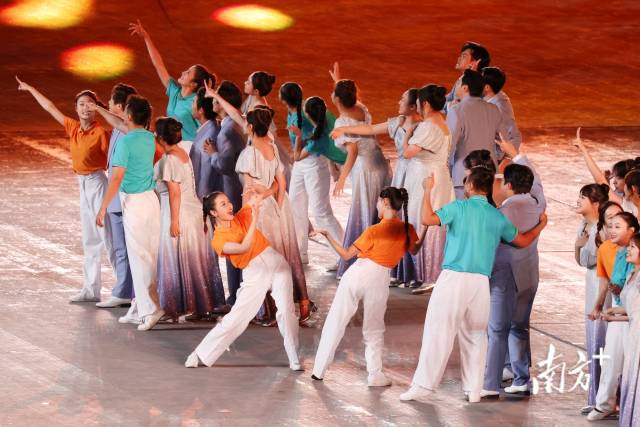 沈晨: 整场演出隐含的核心脉络,是“回家”。从《遥远的歌谣》到《闯海逐浪》,再到《幸福家园》,“回家”的情感贯穿始终。这一理念从闭幕式的第一个瞬间就已展开——短片结束后,粤港澳三地的运动员齐聚深圳,回到这个“温暖的家、年轻的家、科技的家”,共同庆祝拼搏之后的欢聚时刻。