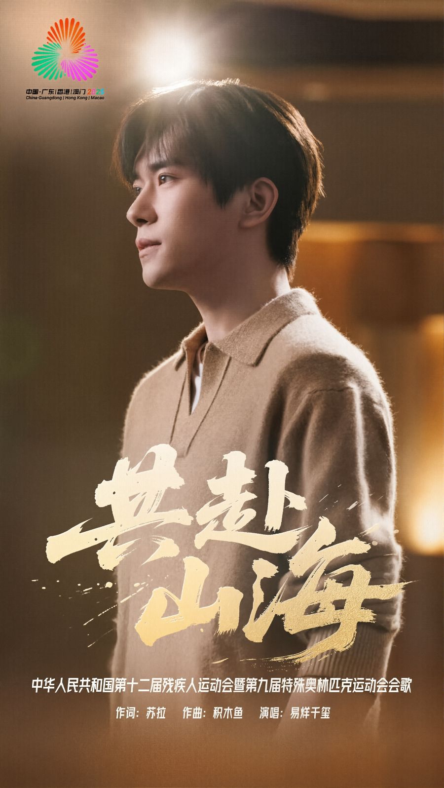11月24日,中华人民共和国第十二届残疾人运动会暨第九届特殊奥林匹克运动会会歌《共赴山海》普通话版MV正式发布。歌曲由积木鱼音乐团队作曲,中国流行音乐协会会员、广东流行音乐协会理事苏拉作词;由青年演员、歌手易烊千玺倾情献唱,并携手粤港澳三地合唱团联合呈现。