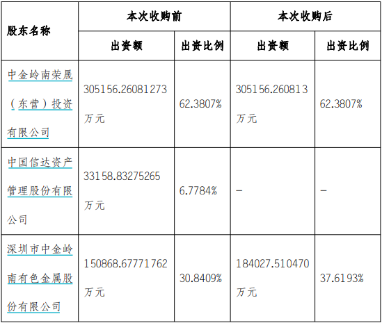 此后,中金岭南以现金方式,收购了少数股东持有的部分中金铜业、中金荣晟股权,公司在中金铜业的股份权益不断增加。