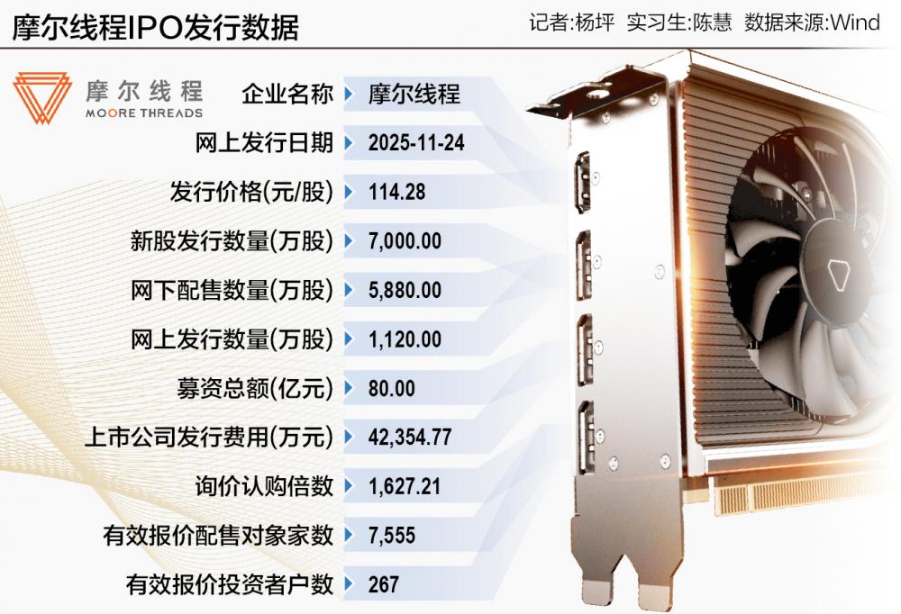 此前,摩尔线程发布了《首次公开发行股票并在科创板上市发行公告》,确认发行价为114.28 元/股,预计募集资金总额为80亿元。