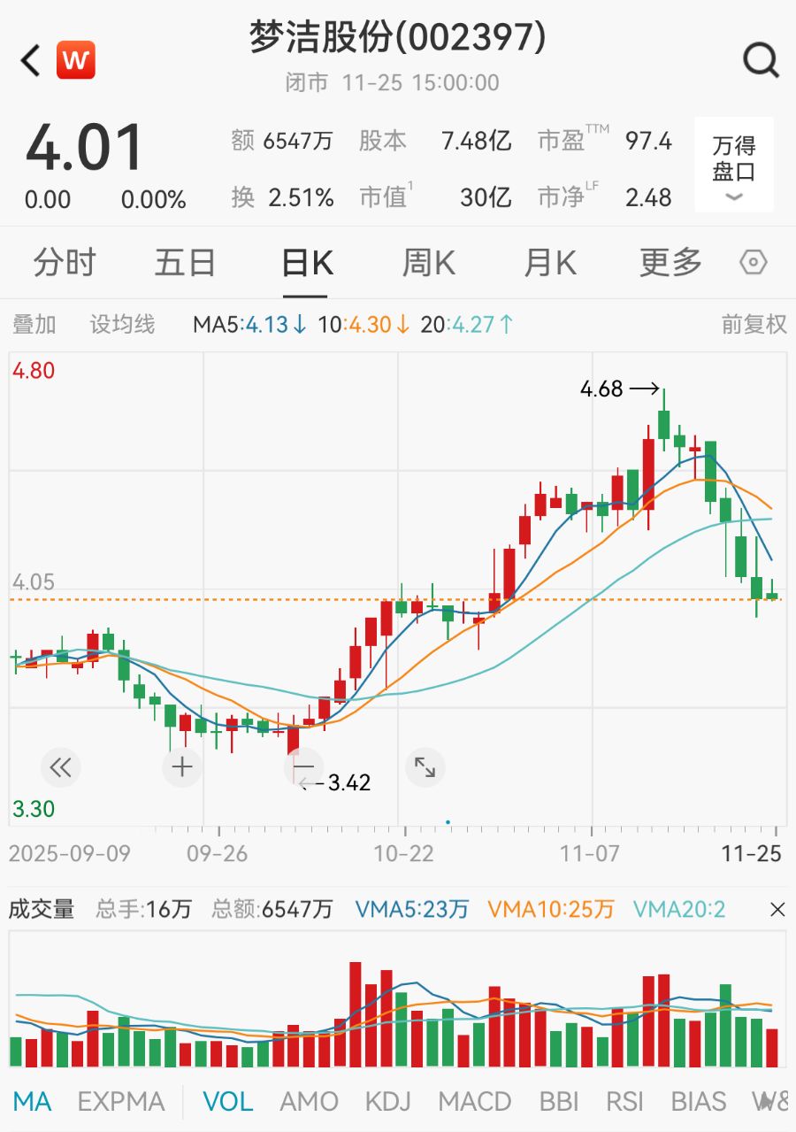 11月25日,梦洁股份平盘报收,股价为4.01元/股,总市值为30亿元,今年以来涨幅超36%。