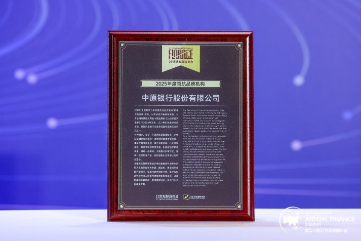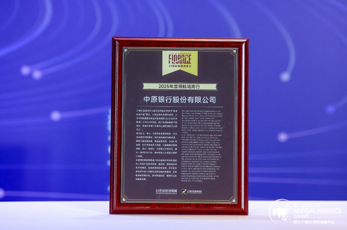 11月22日,在《21世纪经济报道》主办的“第二十届21世纪金融年会”上,2025年21世纪金融竞争力研究案例正式揭晓。中原银行获“2025年度领航品牌机构”“2025年度领航城商行”两项荣誉称号。