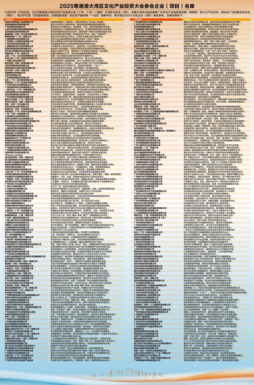 2025粤港澳大湾区文化产业投资大会参会企业(项目)名单