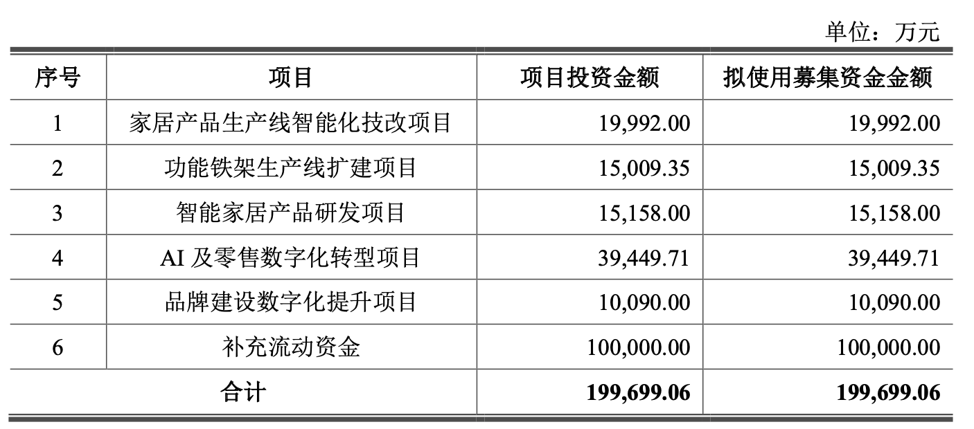 今年10月,顾家家居的定向增发申请获上交所受理,上市公司拟向间接控股股东盈峰集团募集资金不超过19.97亿元,用于家居产品生产线智能化技改项目、功能铁架生产线扩建项目、智能家居产品研发项目等。