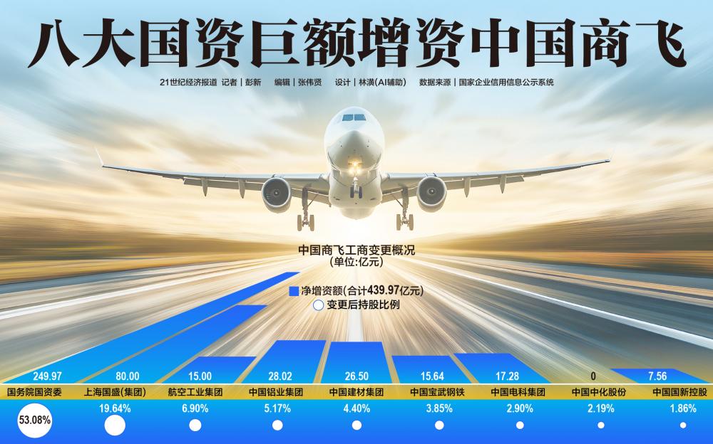 目前,中国商飞股东包括国务院国资委以及8家国央企。此次增资除中化股份1家未对中国商飞进行增资外,其余8家股东均对商飞进行了不同程度的增资。