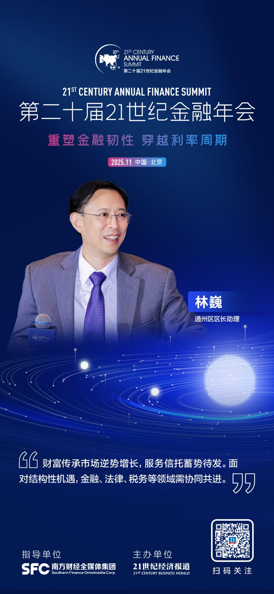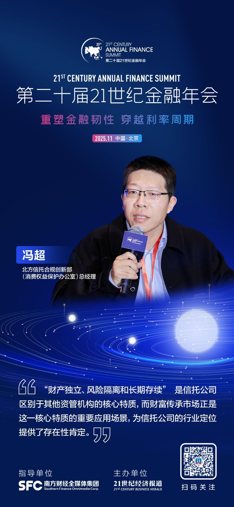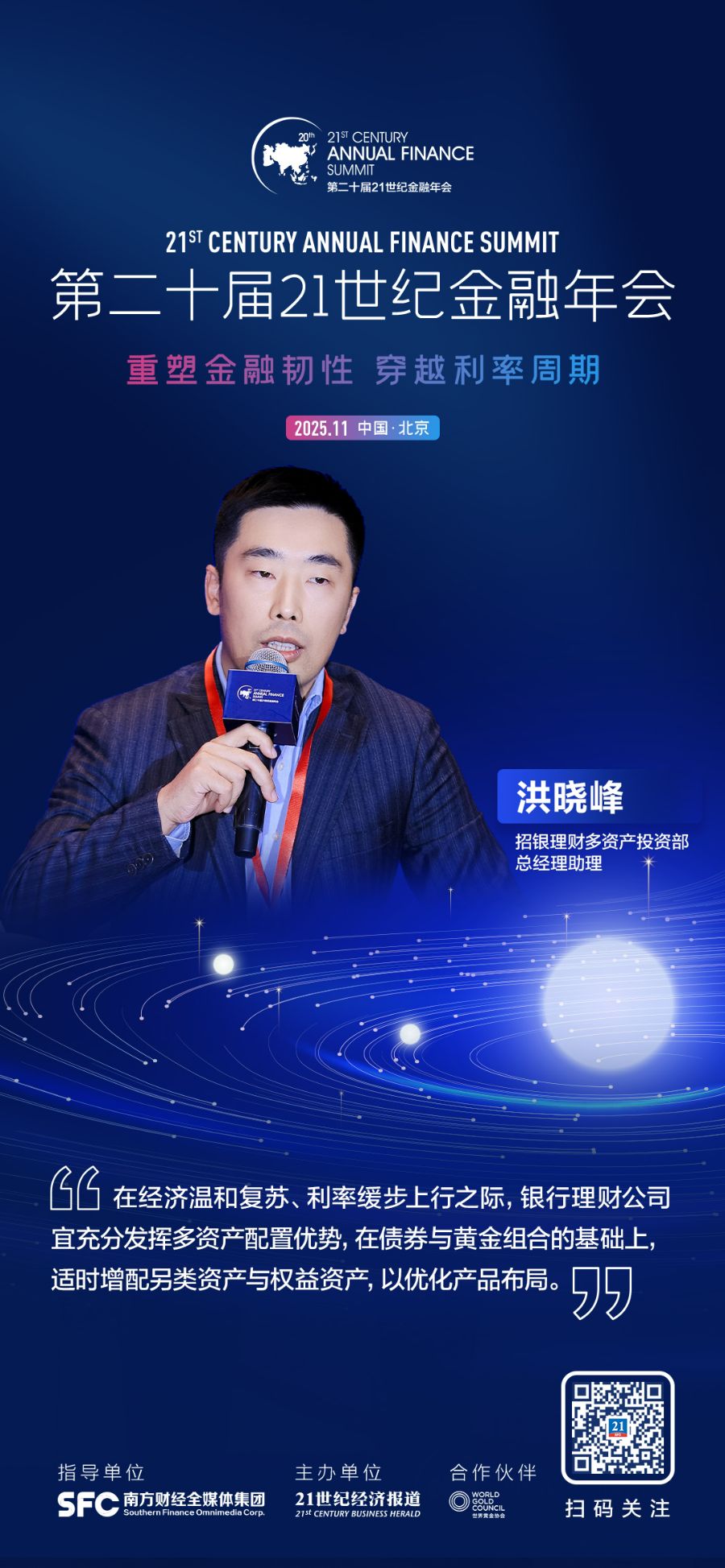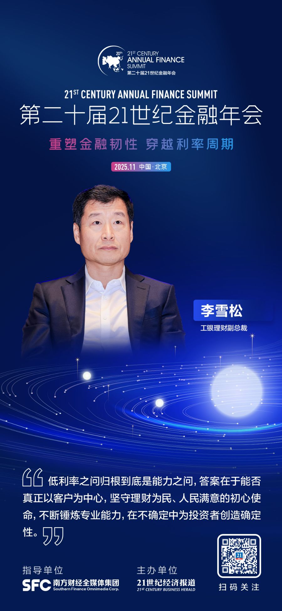 21世纪经济报道记者 叶麦穗 11月22日,为凝聚行业智慧、探寻发展新路径,由南方财经全媒体集团指导、21世纪经济报道主办的“第二十届21世纪金融年会”在北京盛大召开。多位重磅嘉宾出席主题论坛二,共答财富管理的低利率之问。