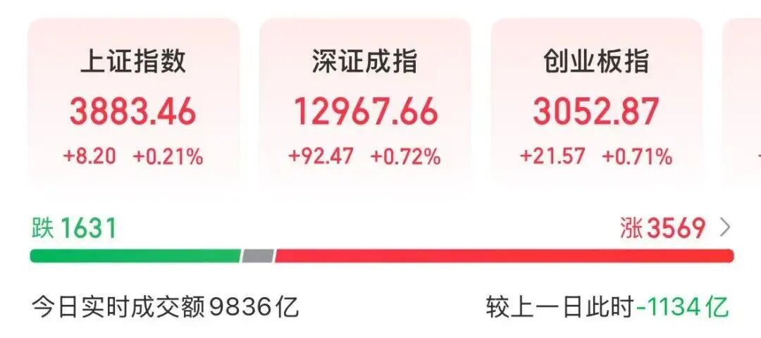 11月28日,A股早盘探底回升,三大指数集体翻红。截至午间收盘,沪指涨0.21%,深成指涨0.72%,创业板指涨0.71%。沪深两市半日成交额不足1万亿,全市场超3500只个股上涨。