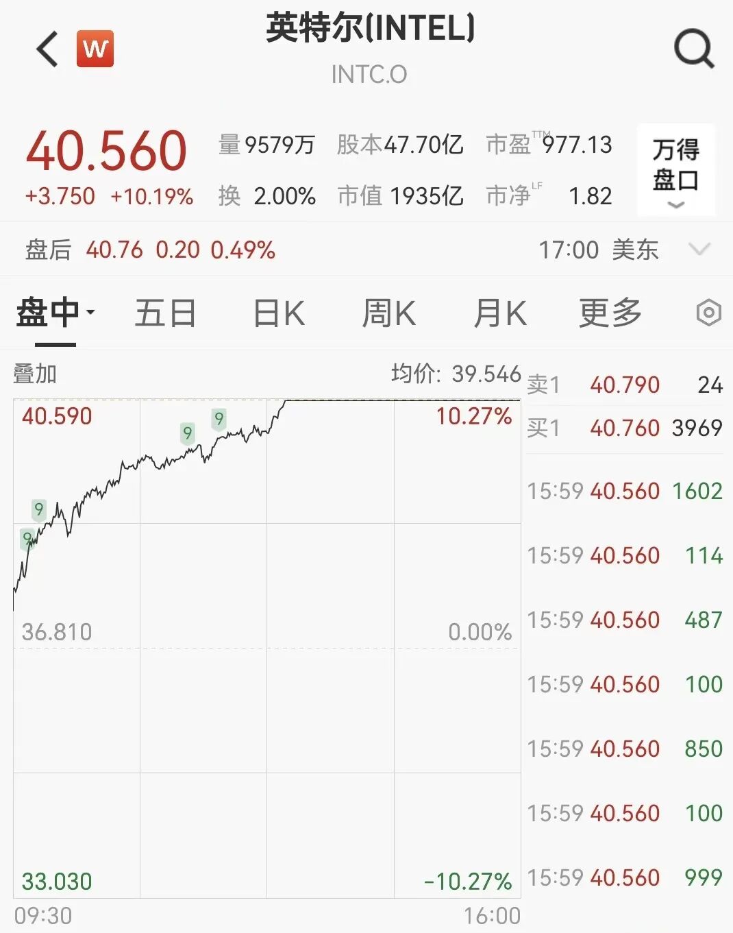 个股方面,英特尔收涨超10%,天风国际证券分析师郭明錤称英特尔预计最快2027年开始出货苹果最低阶M系列处理器。