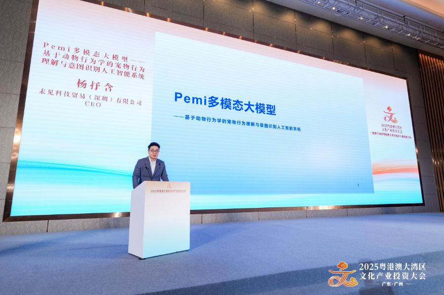 11月28日,2025大湾区文化产业投资大会(广东·广州)港澳专场暨粤港澳大湾区创业大赛路演专场举行。未见科技深圳有限公司CEO杨抒含在现场介绍,未见科技研究的Pemi多模态大模型,主要是服务宠物主的大模型。Pemi多模态大模型通过照片、视频识别宠物行为和情绪,通过正反馈训练机制为宠主提供饲养建议,纠正宠物问题行为,更好满足宠物主的需求。