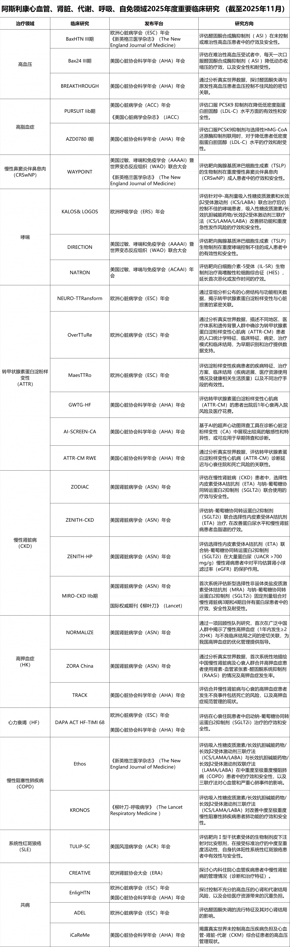 阿斯利康心血管、肾脏、代谢和呼吸领域重要临床研究一览