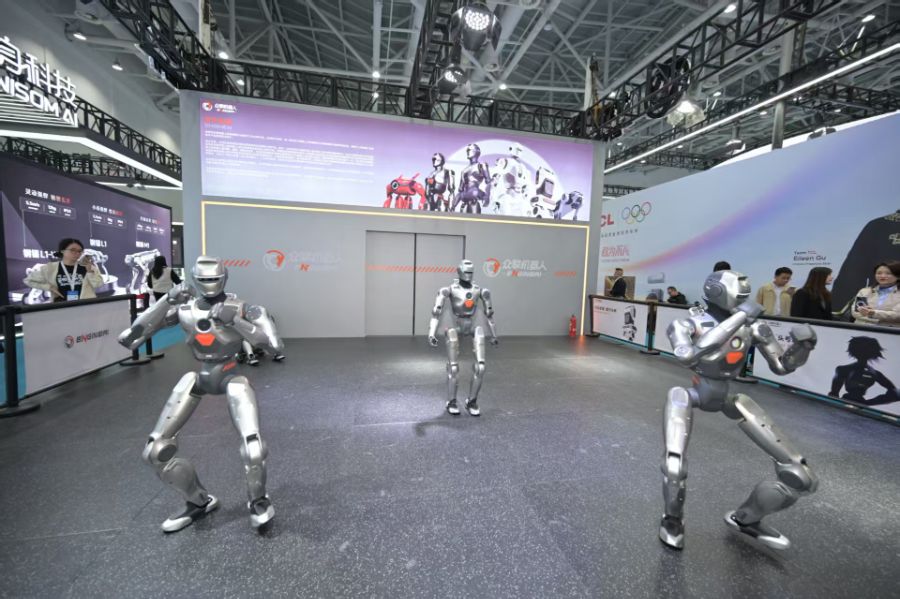 此外,众擎科技带来的机器人PM01也引人注目。PM01身高1.38米,体重约40公斤,全身拥有24个自由度,移动速度达2米/秒;其腰部配备320度自由旋转电机,可完成前空翻、奔跑、斧头舞等多种高难度动作,并具备机械式与类人自然步态两种行走模式。