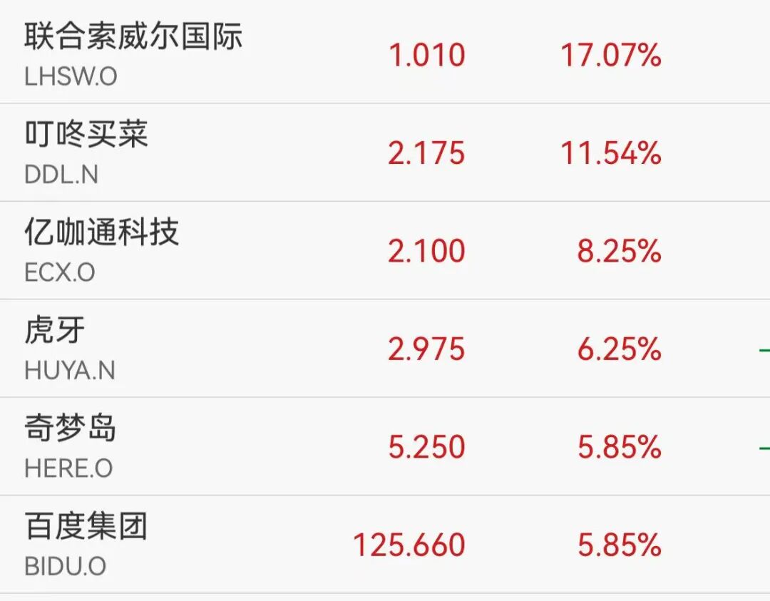 中概股多数上涨,纳斯达克中国金龙指数涨1.29%,万得中概科技龙头指数涨0.66%。个股方面,叮咚买菜涨超11%,百度集团涨近6%,奇富科技涨超4%,万国数据涨超4%,信也科技涨逾4%,BOSS直聘涨超3%。