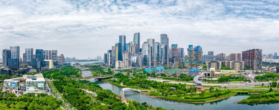 前海地处粤港澳大湾区黄金内湾核心,与香港直线距离仅5公里,国际机场、港口码头、对外开放口岸等交通要素齐全,“1小时交通圈”可覆盖大湾区主要城市。