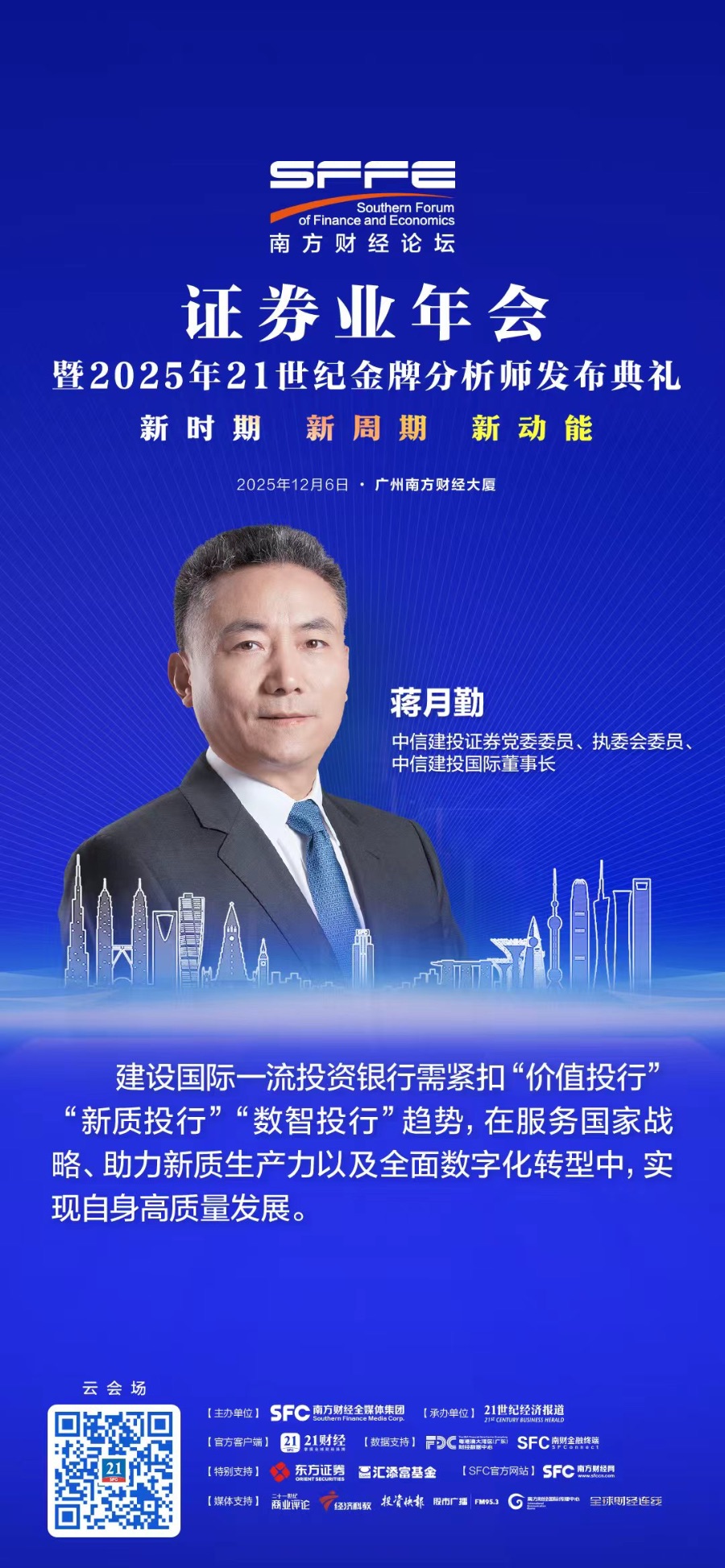 “国际化是建设国际一流投行蓝图指引的方向。”12月5日至6日,在南方财经论坛2025年会证券业分论坛上,中信建投证券党委委员、执委会委员、中信建投国际董事长蒋月勤以《潮涌东方,四海扬帆——中信建投证券国际化的思考与实践》为题,分享了中资券商出海的战略思考与实践路径。