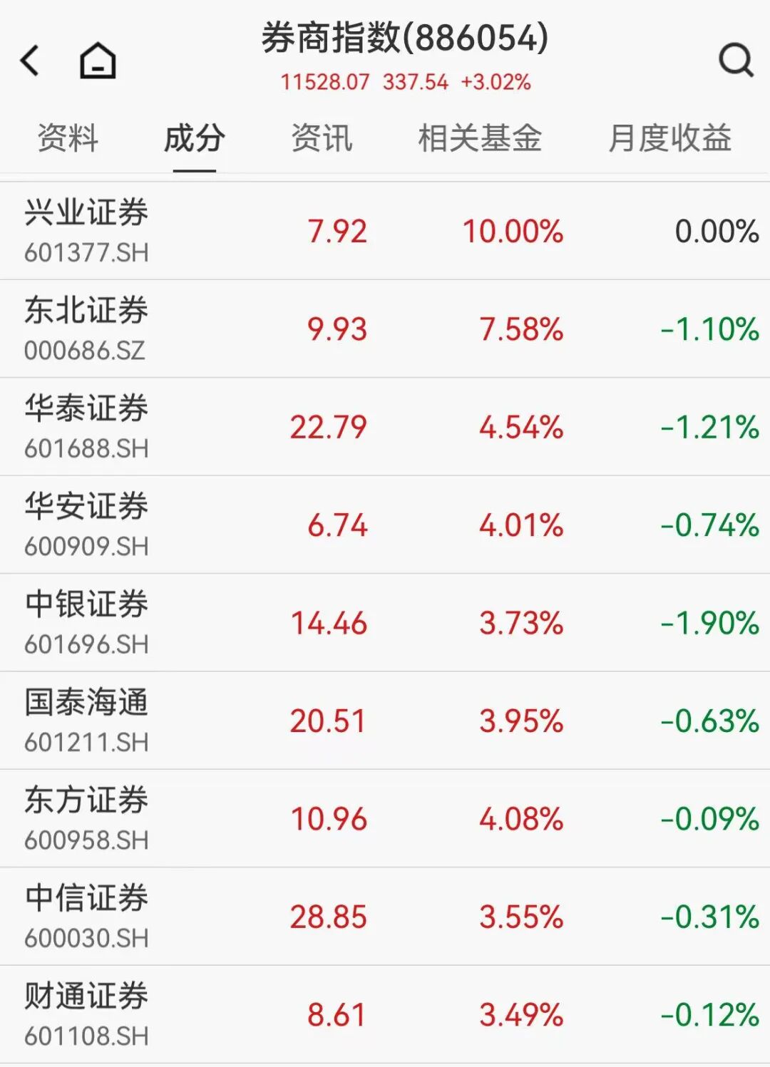 A股券商股再度拉升,兴业证券直线涨停,东北证券涨超7%,中银证券、华泰证券、国泰海通、中信证券、广发证券等跟涨。