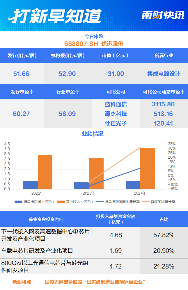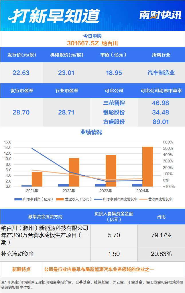 12月8日,可申购创业板的纳百川(301667.SZ)与科创板的优迅股份(688807.SH)。