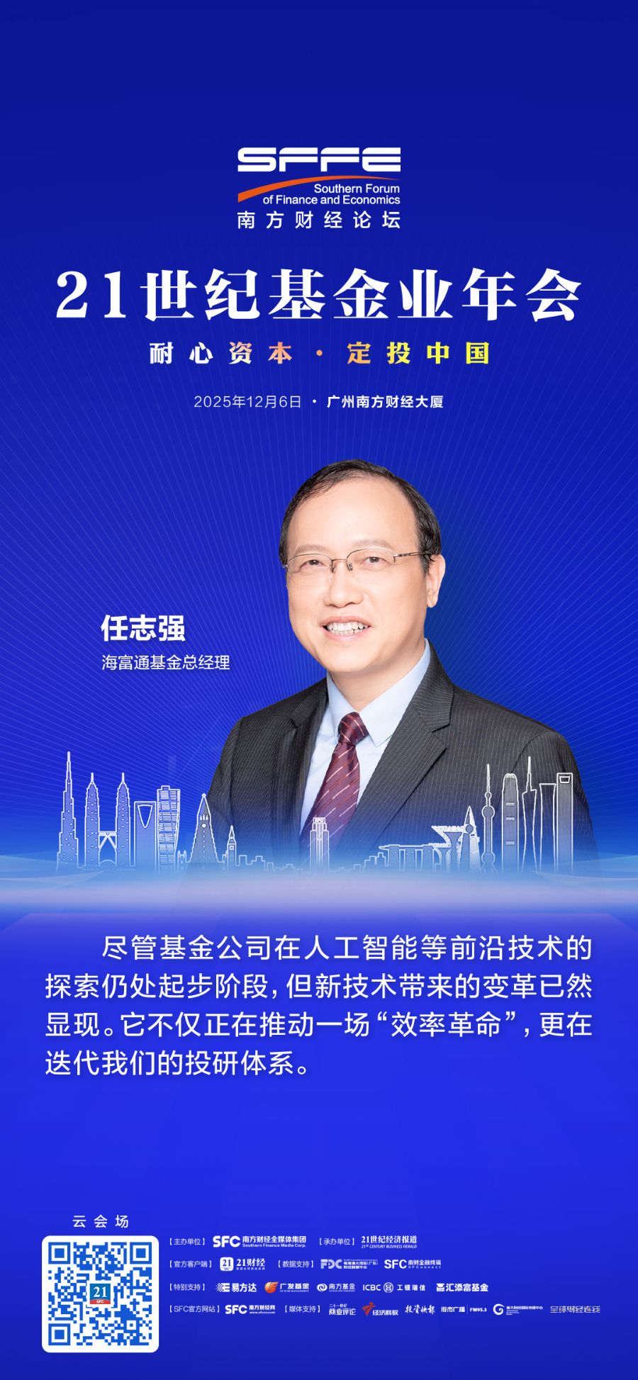 12月6日,在南方财经论坛2025年会基金业分论坛上,海富通基金总经理任志强发表了题为《科技赋能公募行业迈向高质量发展》的主题演讲,分享了基金公司探索科技赋能的实践路径。